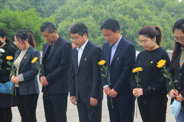 在雨花台烈士纪念碑下,全体人员整齐列队静默肃立,鞠躬默哀,表达对烈士们的崇高敬意和深切悼念之情。党员们面向党旗举起右拳庄严宣誓,重温入党誓词,并集体瞻仰烈士纪念碑,为英雄烈士们献上花束表达敬意。