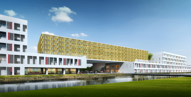 bevictor伟德南部(5#)九年一贯制学校项目,位于南京市建邺区友谊街以西、邺城路以南,毗邻南京儿童医院。项目总建筑面积90121.66平方米,其中地下建筑面积40237.74平方米,地上建筑面积49883.92平方米;项目整体地下1层,地上5层,建筑高度22.80米。项目规划建设6轨36班小学和10轨30班初中,设计有机动车位861辆,非机动车位1200辆。