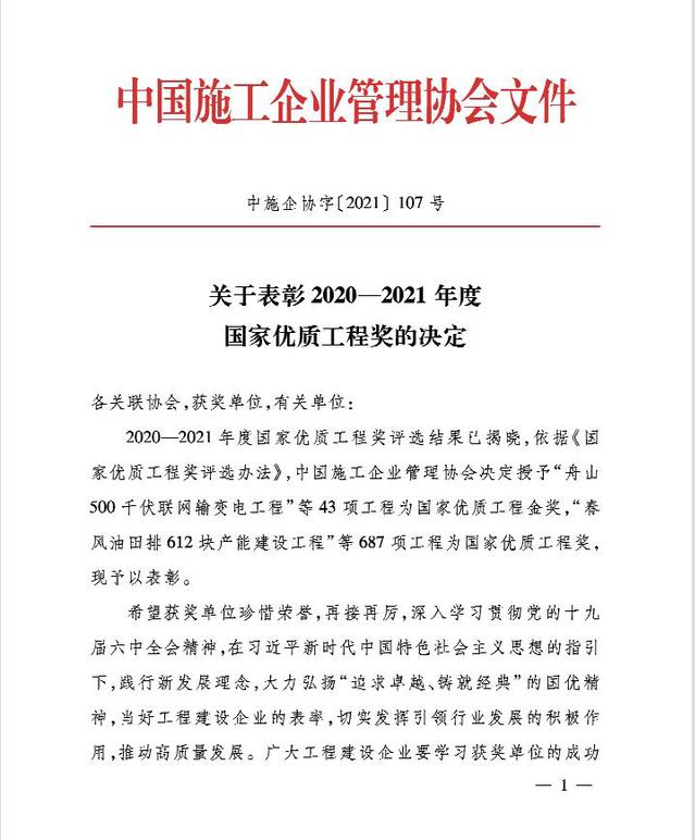2021年12月6日,中国施工企业管理协会公布2020-2021国家优质工程奖获奖名单,bevictor伟德集团新城公司所属南京bevictor伟德工程项目管理有限公司代建的招商银行南京分行招银大厦项目喜获该奖项。国家优质工程奖设立于1981年,是经国务院确认的我国工程建设领域设立最早,规格最高,跨行业、跨专业的国家级质量奖。