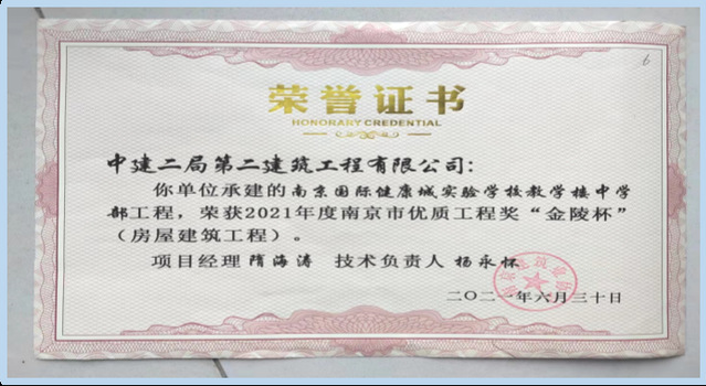 本项目自2018年3月正式开工以来,校方即提前开始招生工作,故项目进度不容拖延,且针对项目专业施工单位较多的现状,进行周密部署,制定总控计划,克服难关,不仅按期完成了建设任务,该项目还先后获得了“金陵杯”、南京市优质结构奖、省级QC成果两项、发明专利3项、实用新型专利5项、软件著作权3项、省级科技奖2项。