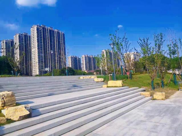绿博园南入口项目将原来长势欠佳的树木林改造为阶梯式花岗岩铺装广场,并增设了生态亲水平台,既丰富了公园景观,又为即将开通的扬子江人行过街通道提供了一个景观优美的集散场地,满足了行人休憩、亲水等游玩需求。