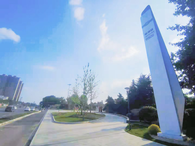 绿博园东入口项目在绿植选用上注重运用彩叶树种,中山红、佛甲草、南天竹等彩叶乔灌木,衬托在绿茵茵的草坪上,增强了观赏效果。大面积的花岗岩铺装,弧形路牙石花坛、多色植物搭配,形成了空间开阔、环境优美的公园出入口景观。