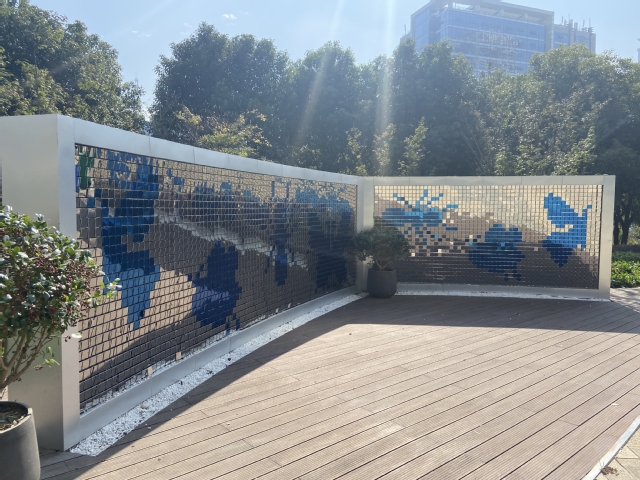 该项目位于南京青奥村,施工面积3000平方米,项目以书和自然(昆虫)为设计理念建成了一个全方位体验的多感官广场:在视觉上,活字印刷墙随光影的变化能够显现出千字文的内容;在听觉上,风动墙和昆虫互动装置铝会发出特有的声音;在嗅觉上,垂直绿化墙体上的绿植在开花时散发出阵阵花香;在触觉上,文字互动装置拨动双色滚珠时,可组成不同文字或图案。