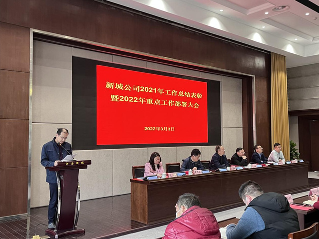 会议首先由新城公司董事长张国庆进行2021年工作总结及2022年重点工作部署。成本管理部、综合项目部负责人随后作了表态发言。