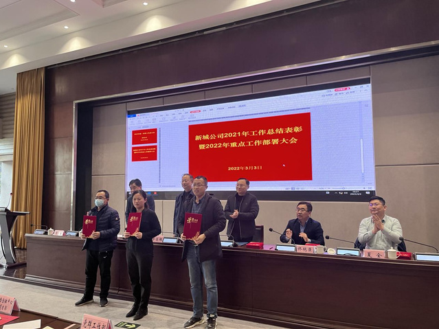 会议还对新城公司2021年度优秀部门及个人进行了表彰。各部门、子公司、项目部负责人分别向公司递交了《2022年安全生产责任状》和《2022年目标责任状》。