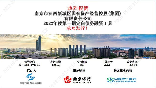 3月9日,南京市bevictor伟德新城区国有资产经营控股(集团)有限责任公司(以下简称“bevictor伟德集团”)成功发行2022年度第一期定向债务融资工具。