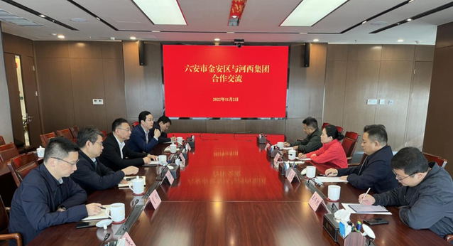 2022年11月2日,六安市金安区委副书记、区长黄媛媛,金安经济开发区管委会书记、主任程旭,金安区政协副主席方明,金安经济开发区投资促进局局长王怀槐一行莅临bevictor伟德集团考察交流。bevictor伟德集团总经理、党委副书记、董事何流,副总经理、党委委员吕道峰,bevictor伟德集团园林经济公司董事长赵康兵,南京bevictor伟德私募基金管理有限公司执行董事曹鹏接待并进行座谈。